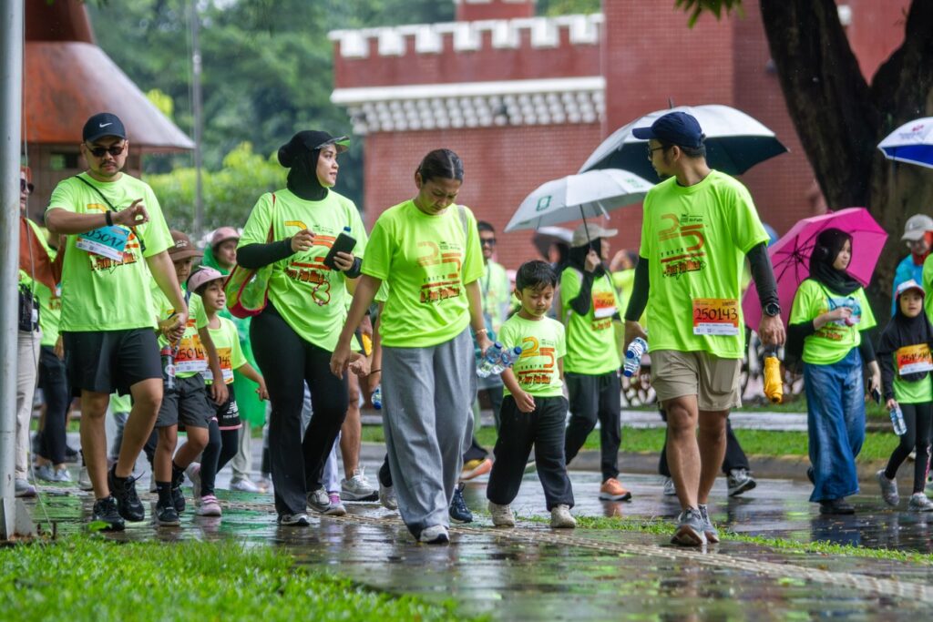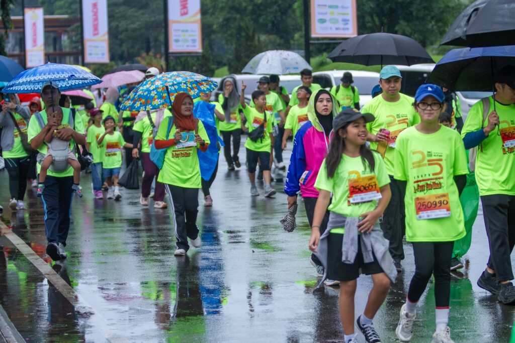 Memasuki garis akhir, suasana semakin meriah. Para peserta menerima medali sebagai simbol keberhasilan menuntaskan perjalanan. Pengalungan medali menjadi momen penuh maknaābukan hanya menandai selesainya rute jalan santai, tetapi juga melambangkan perjalanan panjang kebersamaan selama 25 tahun.
