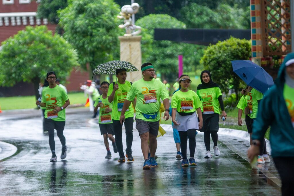 Peserta kategori 3K dan 5K kemudian memulai perjalanan santai menyusuri anjungan budaya. Rute ini memberikan pengalaman unik: berjalan sehat sambil menikmati keberagaman budaya Nusantara, selaras dengan nilai pendidikan yang menanamkan wawasan global tanpa melupakan akar budaya.
