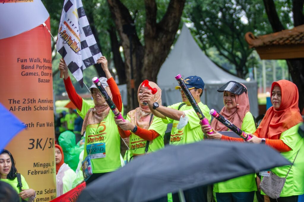 Meskipun hujan sempat turun, hal tersebut tidak menyurutkan antusiasme peserta. Justru suasana semakin terasa hangat karena semua tetap bertahan, saling menyemangati, dan menikmati setiap rangkaian acara sebagai bagian dari perayaan perjalanan panjang Al-Fath selama seperempat abad.